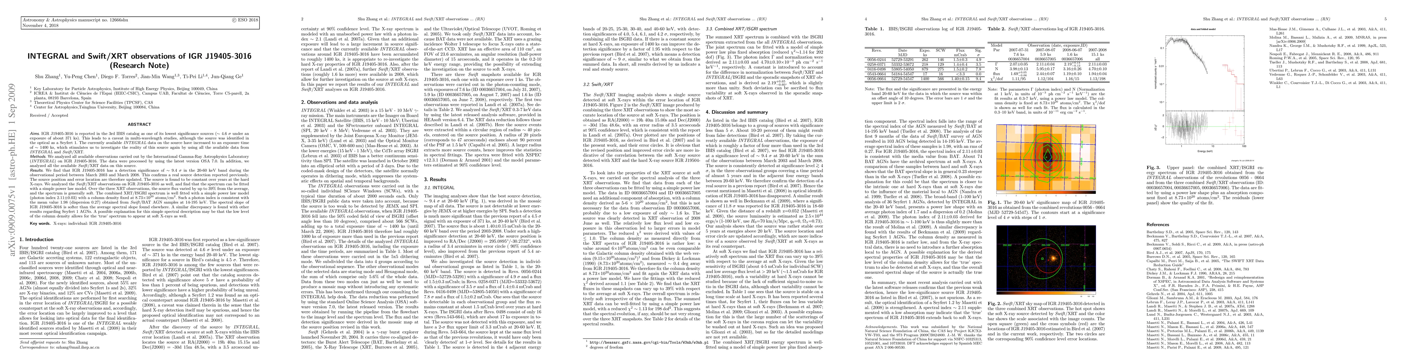 Researchers confirm a real source detection for IGR J19405-3016 using INTEGRAL and Swift/XRT observations, finding a constant hard X-ray source with a soft spectrum and a photon index of 2.11.