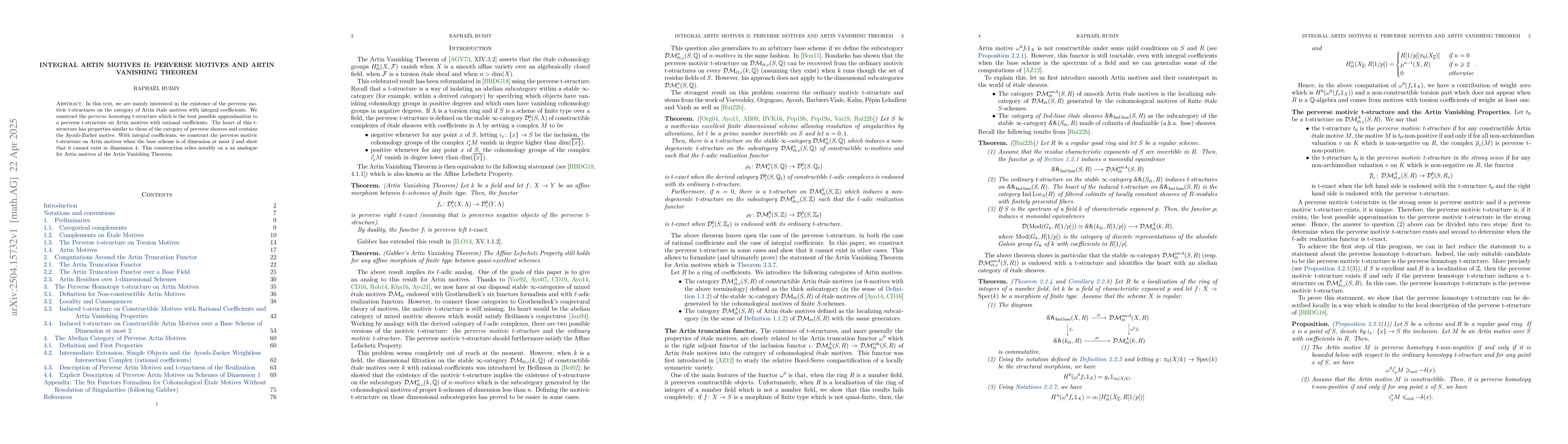 Researchers develop a theory on Artin motives with integral coefficients, showing that perverse motivic t-structures exist in lower dimensions but not in dimension 4.