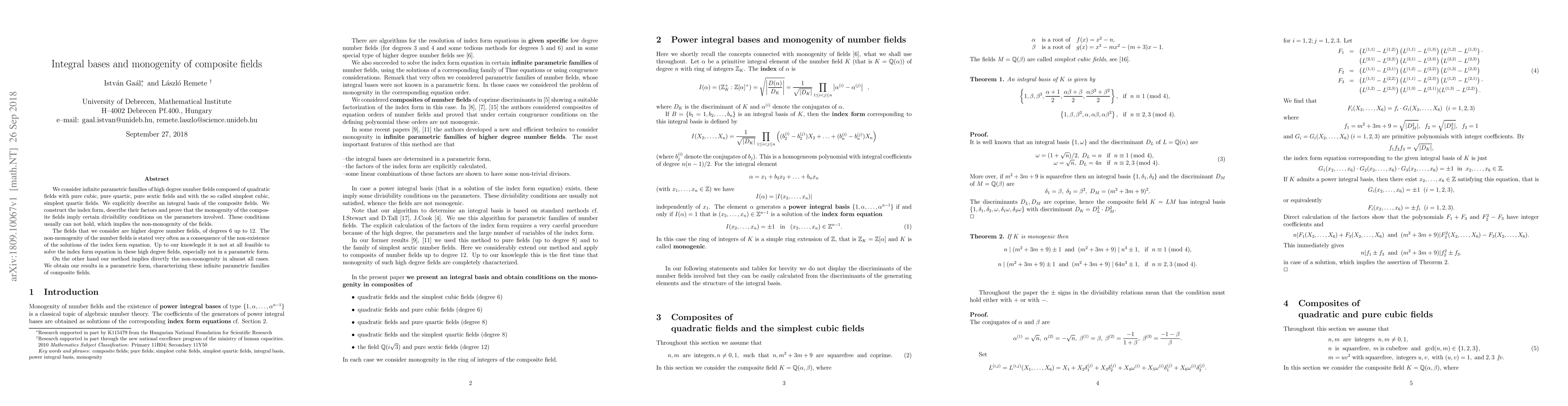 We consider infinite parametric families of high degree number fields composed of quadratic fields with pure cubic, pure quartic, pure sextic fields and with the so called simplest cubic, simplest quartic fields. We explicitly describe an integral basis of the composite fields. We construct the index form, describe their factors and prove that the monogenity of the composite fields imply certain divisibility conditions on the parameters involved. These conditions usually can not hold, which implies the non-monogenity of the fields. The fields that we consider are higher degree number fields, of degrees 6 up to 12. The non-monogenity of the number fields is stated very often as a consequence of the non-existence of the solutions of the index form equation. Up to our knowlegde it is not at all feasible to solve the index form equation in these high degree fields, especially not in a parametric form. On the other hand our method implies directly the non-monogenity in almost all cases. We obtain our results in a parametric form, characterizing these infinite parametric families of composite fields.