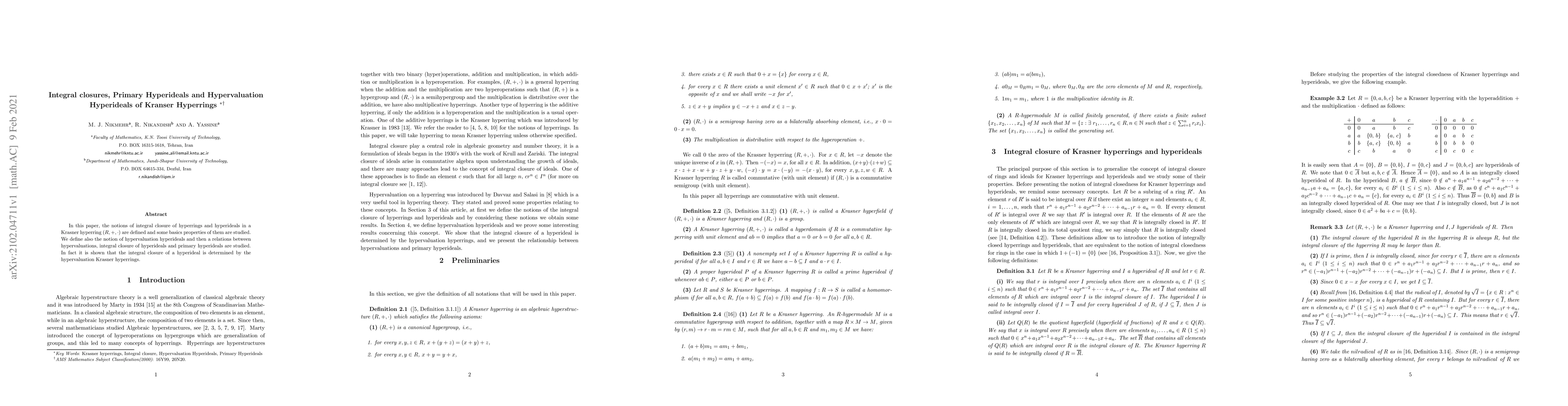 In this paper, the notions of integral closure of hyperrings and hyperideals in a Krasner hyperring $(R, +, \cdot)$ are defined and some basics properties of them are studied. We define also the notion of hypervaluation hyperideals and then a relations between hypervaluations, integral closure of hyperideals and primary hyperideals are studied. In fact it is shown that the integral closure of a hyperideal is determined by the hypervaluation Krasner hyperrings.