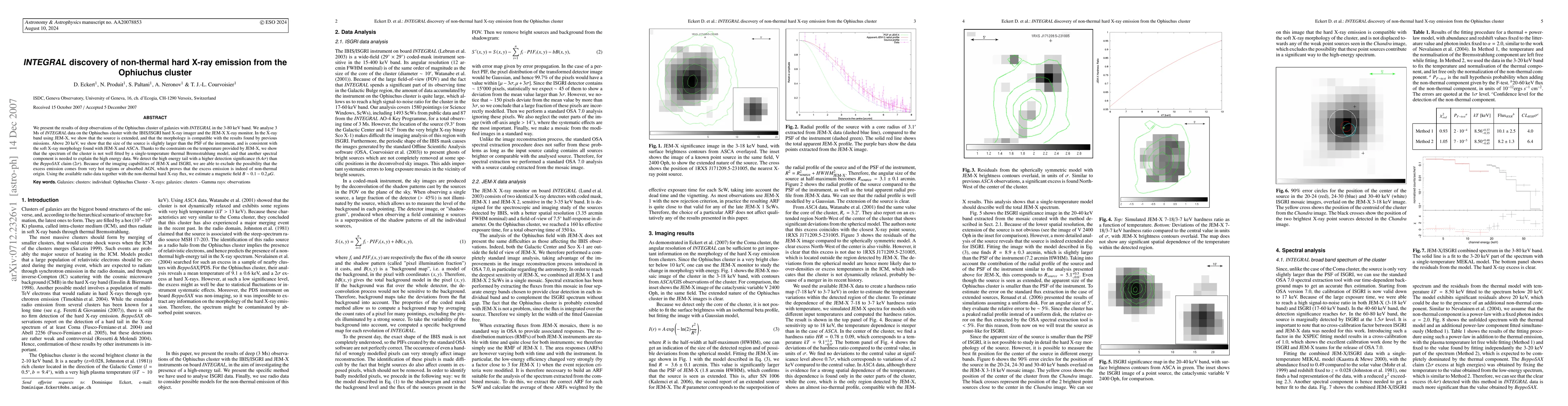 We present the results of deep observations of the Ophiuchus cluster of galaxies with INTEGRAL in the 3-80 keV band. We analyse 3 Ms of INTEGRAL data on the Ophiuchus cluster with the IBIS/ISGRI hard X-ray imager and the JEM-X X-ray monitor. In the X-ray band using JEM-X, we show that the source is extended, and that the morphology is compatible with the results found by previous missions. Above 20 keV, we show that the size of the source is slightly larger than the PSF of the instrument, and is consistent with the soft X-ray morphology found with JEM-X and ASCA. Thanks to the constraints on the temperature provided by JEM-X, we show that the spectrum of the cluster is not well fitted by a single-temperature thermal Bremsstrahlung model, and that another spectral component is needed to explain the high energy data. We detect the high energy tail with a higher detection significance (6.4 sigma) than the BeppoSAX claim (2 sigma). Because of the imaging capabilities of JEM-X and ISGRI, we are able to exclude the possibility that the excess emission comes from very hot regions or absorbed AGN, which proves that the excess emission is indeed of non-thermal origin. Using the available radio data together with the non-thermal hard X-ray flux, we estimate a magnetic field B ~ 0.1-0.2 mu G.