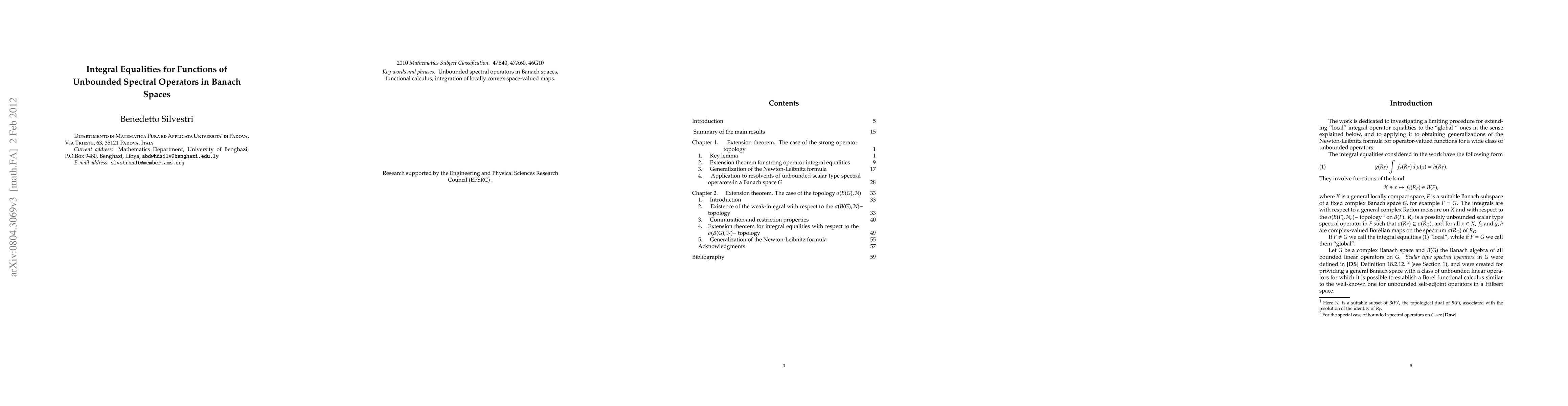 This paper explores extending local integral operator equalities to global ones for unbounded spectral operators in Banach spaces, with implications for generalizing the Newton-Leibnitz formula for operator-valued maps.