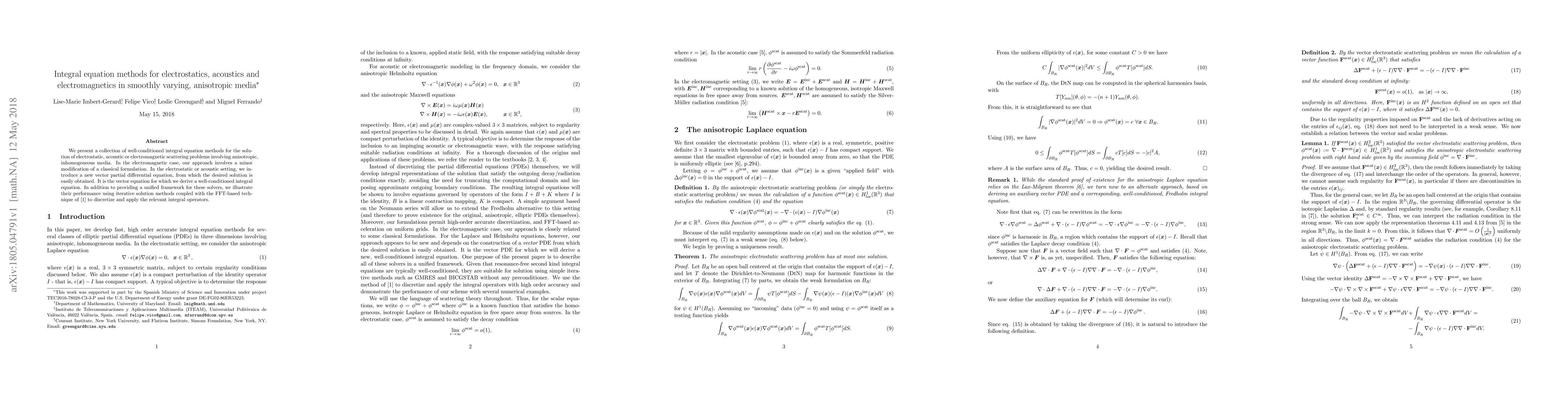 Researchers developed unified integral equation methods for solving electrostatics, acoustics, and electromagnetics in anisotropic media, providing a new framework for efficiently solving these complex problems.