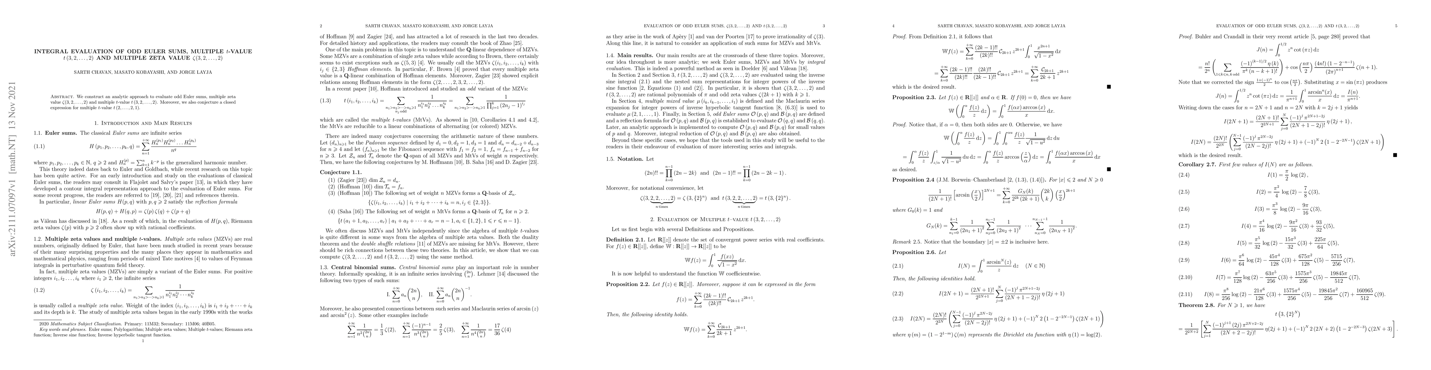 This paper develops an analytic method to evaluate odd Euler sums, the multiple zeta value $\zeta(3,2,\ldots,2)$, and the multiple $t$-value $t\left(3,2,\ldots,2\right)$, and proposes a conjectured closed expression for $t\left(2,\ldots,2,1\right)$.