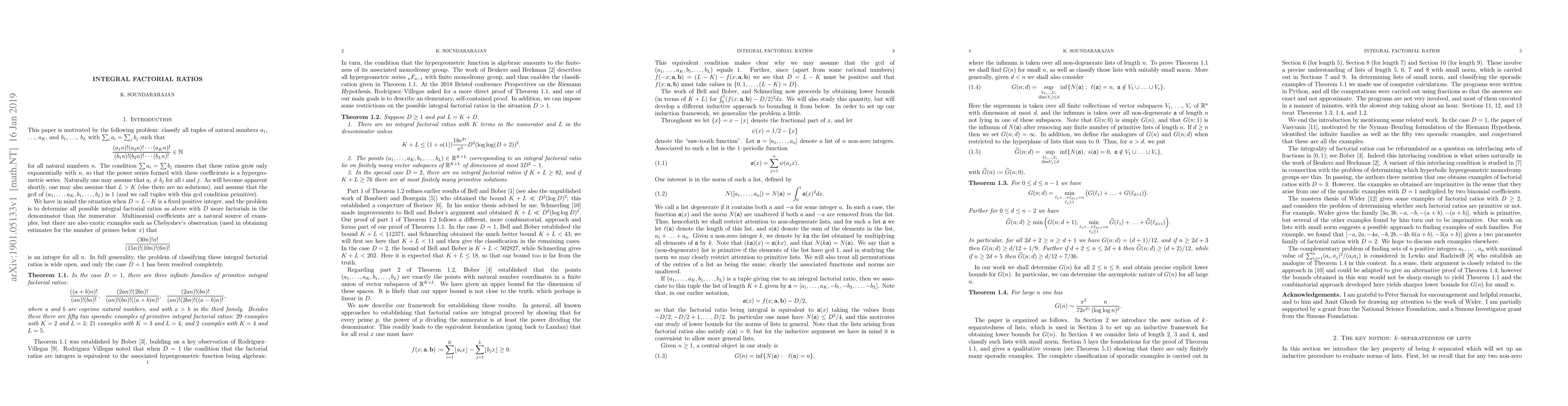 Researchers developed a new approach to proving Bober's result on integral factorial ratios, establishing a direct proof for the statement that $(30n)!n!/((15n)!(10n)!(6n)!)$ is an integer for all $n$.