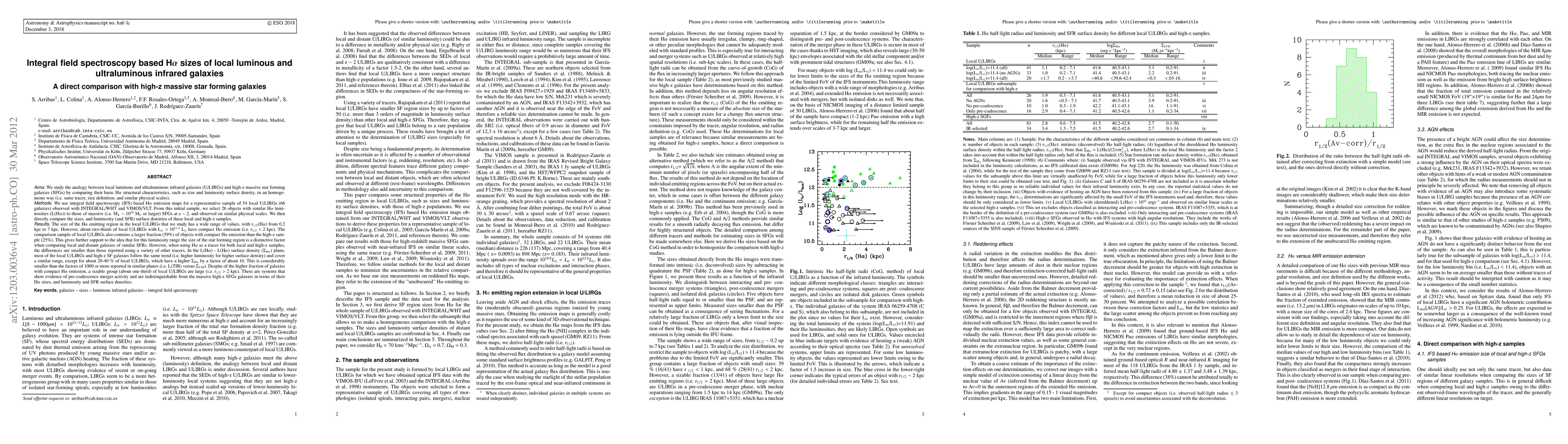 Aims. We study the analogy between local U/LIRGs and high-z massive SFGs by comparing basic H{\alpha} structural characteristics, such as size, and luminosity (and SFR) surface density, in an homogeneous way (i.e. same tracer and size definition, similar physical scales). Methods. We use Integral Field Spectroscopy based H{\alpha} emission maps for a representative sample of 54 local U/LIRGs (66 galaxies). From this initial sample we select 26 objects with H{\alpha} luminosities (L(H{\alpha})) similar to those of massive (i.e. M\ast \sim 10^10 M\odot or larger) SFGs at z \sim 2, and observed on similar physical scales. Results. The sizes of the H{\alpha} emitting region in the sample of local U/LIRGs span a large range, with r1/2(H{\alpha}) from 0.2 to 7 kpc. However, about 2/3 of local U/LIRGs with Lir > 10^11.4 L\odot have compact H{\alpha} emission (i.e. r1/2 < 2 kpc). The comparison sample of local U/LIRGs also shows a higher fraction (59%) of objects with compact H{\alpha} emission than the high-z sample (25%). This gives further support to the idea that for this luminosity range the size of the star forming region is a distinctive factor between local and distant galaxies of similar SF rates. However, when using H{\alpha} as a tracer for both local and high-z samples, the differences are smaller than the ones recently reported using a variety of other tracers. Despite of the higher fraction of galaxies with compact H{\alpha} emission, a sizable group (\sim 1/3) of local U/LIRGs are large (i.e. r1/2 > 2 kpc). These are systems showing pre-coalescence merger activity and they are indistinguishable from the massive high-z SFGs galaxies in terms of their H{\alpha} sizes, and luminosity and SFR surface densities.