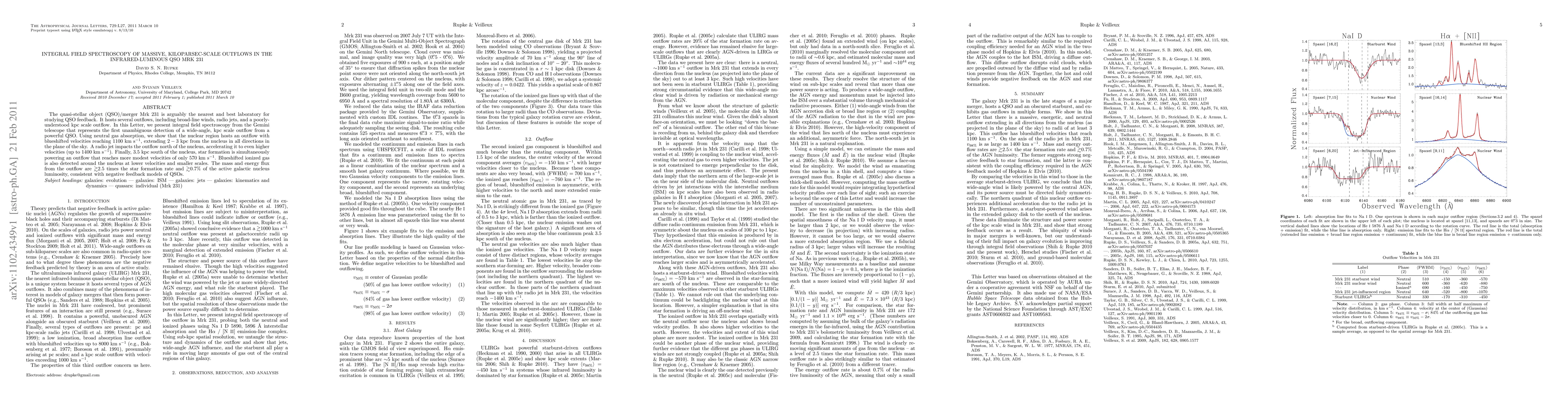 This paper reports the first detection of a wide-angle, kiloparsec-scale outflow from the QSO Mrk 231 using integral field spectroscopy, revealing blueshifted gas with velocities up to 1400 km/s. The outflow is driven by both the active galactic nucleus and star formation, providing evidence for negative feedback mechanisms in QSOs.