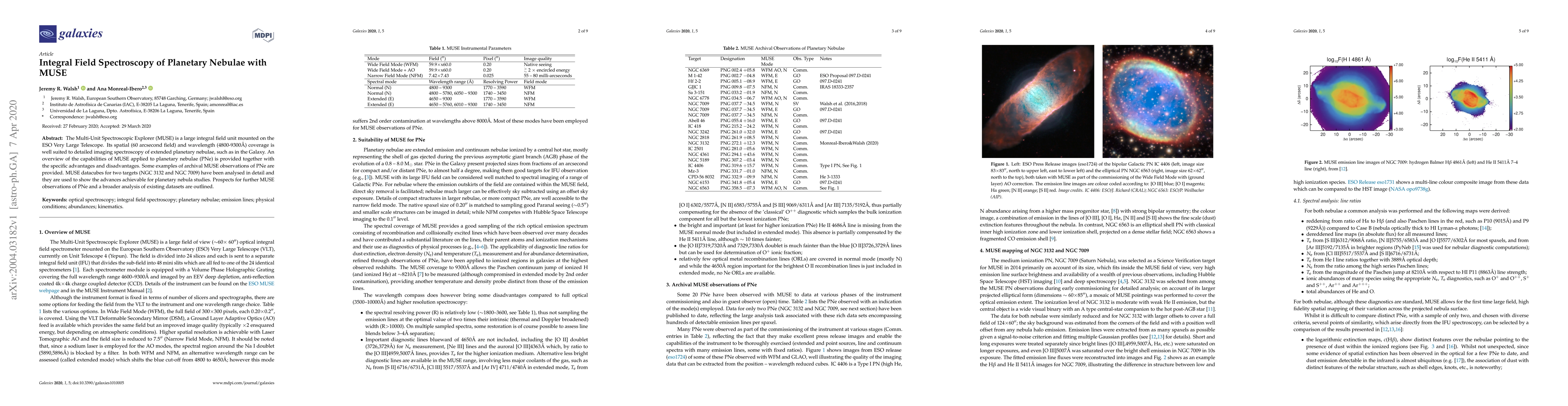 This paper explores the capabilities of the MUSE instrument on the VLT for detailed spectroscopy of planetary nebulae, highlighting its advantages and analyzing data from NGC 3132 and NGC 7009 to demonstrate significant advances in nebula studies. The study also outlines future prospects for further MUSE observations of planetary nebulae.