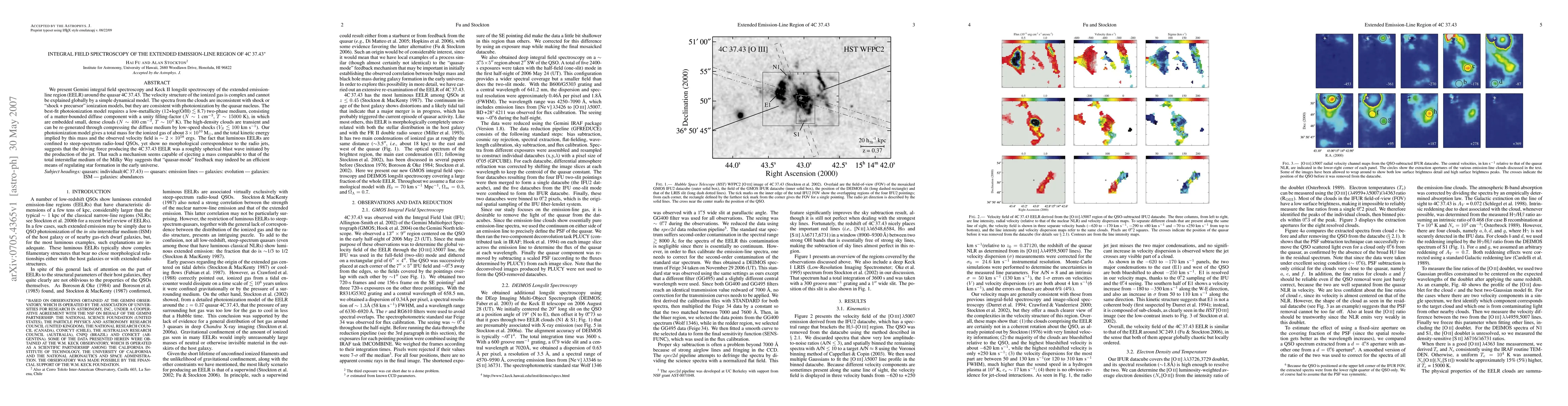 We present Gemini integral field spectroscopy and Keck II longslit spectroscopy of the extended emission-line region (EELR) around the quasar 4C 37.43. The velocity structure of the ionized gas is complex and cannot be explained globally by a simple dynamical model. The spectra from the clouds are inconsistent with shock or ``shock + precursor'' ionization models, but they are consistent with photoionization by the quasar nucleus. The best-fit photoionization model requires a low-metallicity (12+log(O/H) < 8.7) two-phase medium, consisting of a matter-bounded diffuse component with a unity filling-factor (N ~ 1 \cc, T ~ 15000 K), in which are embedded small, dense clouds (N ~ 400 \cc, T ~ 10^4 K). The high-density clouds are transient and can be re-generated through compressing the diffuse medium by low-speed shocks (V_S \lesssim 100 \kms). Our photoionization model gives a total mass for the ionized gas of about 3x10^{10} M_sun, and the total kinetic energy implied by this mass and the observed velocity field is ~2x10^{58} ergs. The fact that luminous EELRs are confined to steep-spectrum radio-loud quasars, yet show no morphological correspondence to the radio jets, suggests that the driving force producing the 4C 37.43 EELR was a roughly spherical blast wave initiated by the production of the jet. That such a mechanism seems capable of ejecting a mass comparable to that of the total interstellar medium of the Milky Way suggests that ``quasar-mode'' feedback may indeed be an efficient means of regulating star formation in the early universe.