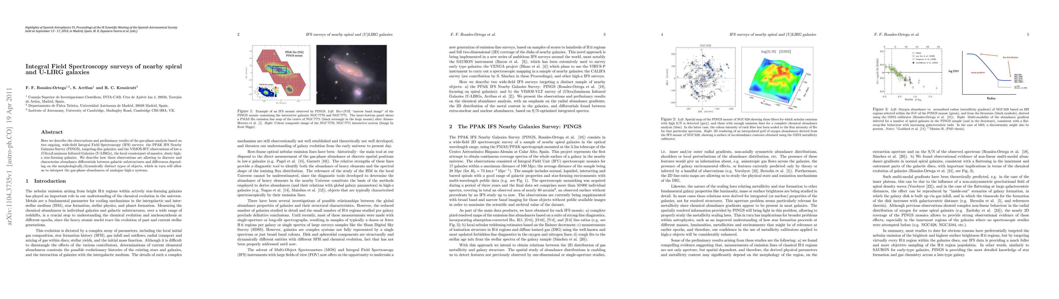This study uses Integral Field Spectroscopy to analyze nearby spiral galaxies and Ultra-Luminous Infrared Galaxies, discovering abundance differences between substructures and galaxy types that can help interpret gas-phase abundances of high-z systems.