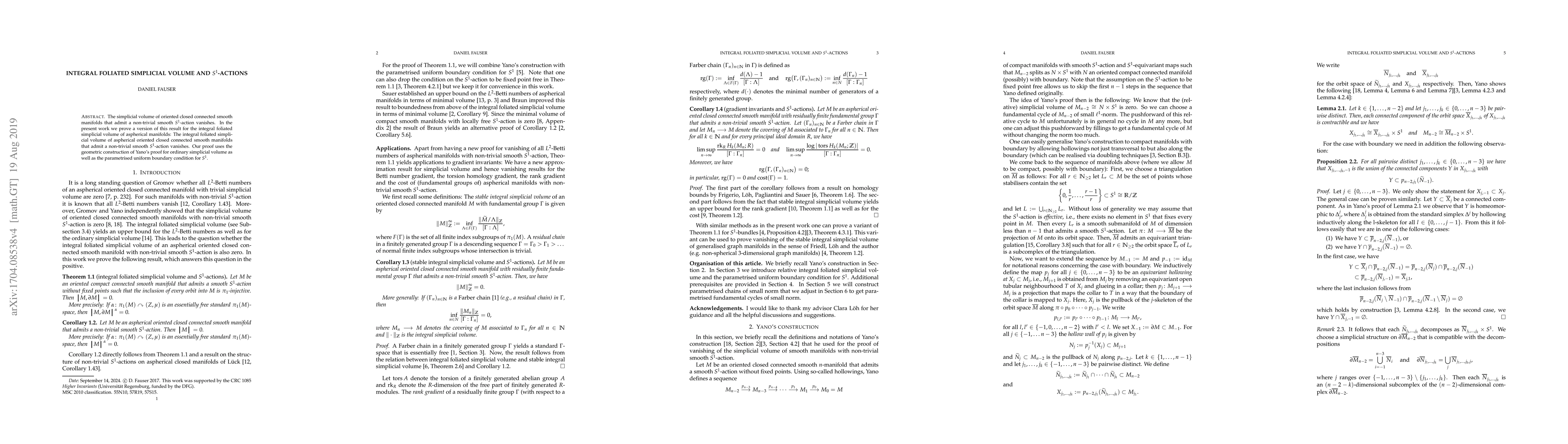 The work builds upon Yano's simplicial volume proof by adapting it to the integral foliated simplicial volume setting, specifically for aspherical manifolds with S1-actions, thus providing a new perspective and result in the field.