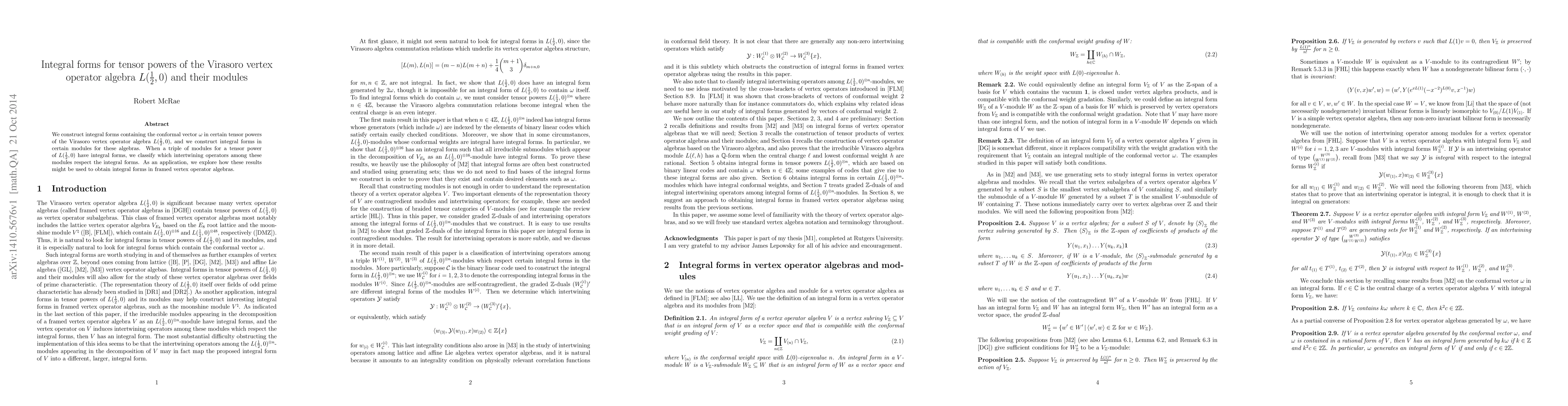 This paper constructs integral forms in tensor powers of the Virasoro vertex operator algebra $L(\frac{1}{2},0)$ and their modules, classifying intertwining operators that respect these forms. It also applies these results to explore integral forms in framed vertex operator algebras.