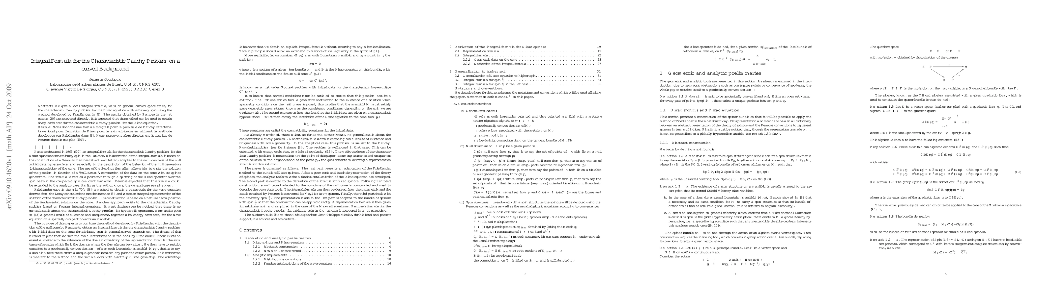 This paper presents a local integral formula for the characteristic Cauchy problem on curved space-times for the Dirac equation of arbitrary spin, extending Friedlander's method. The results recover Penrose's findings for the flat case and aim to provide sharp estimates for the problem.