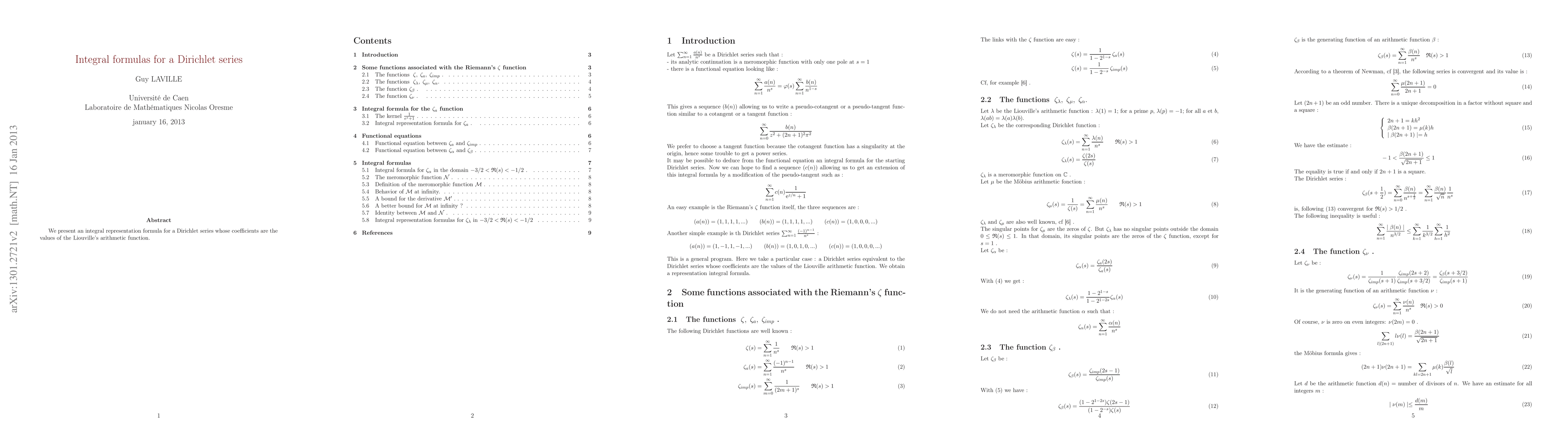 Summary: This paper introduces an integral representation formula for Dirichlet series with coefficients derived from Liouville's arithmetic function, providing a novel approach to understanding these series.