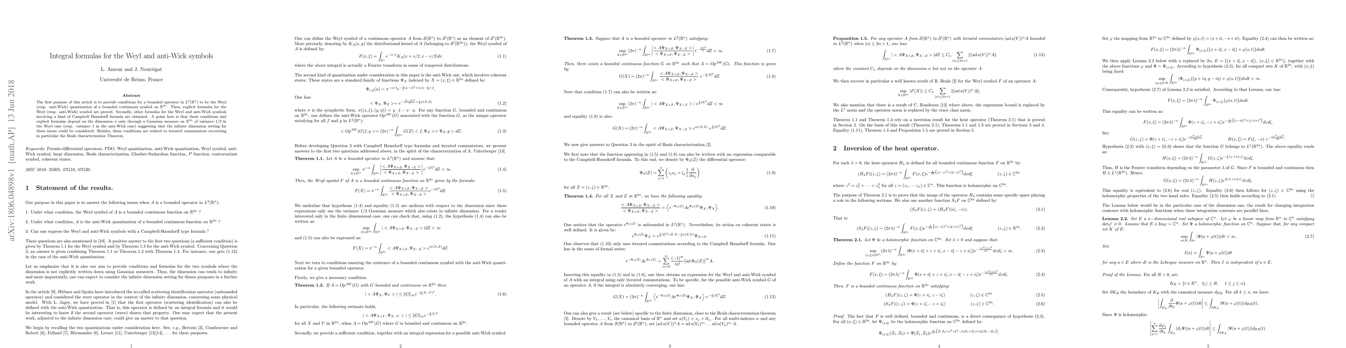 This paper establishes conditions for bounded operators in $L^2(\R^n)$ to be the Weyl or anti-Wick quantization of continuous symbols, and provides explicit formulas for these symbols. It also explores related formulas involving Campbell Hausdorff expressions and suggests potential extensions to infinite dimensions.