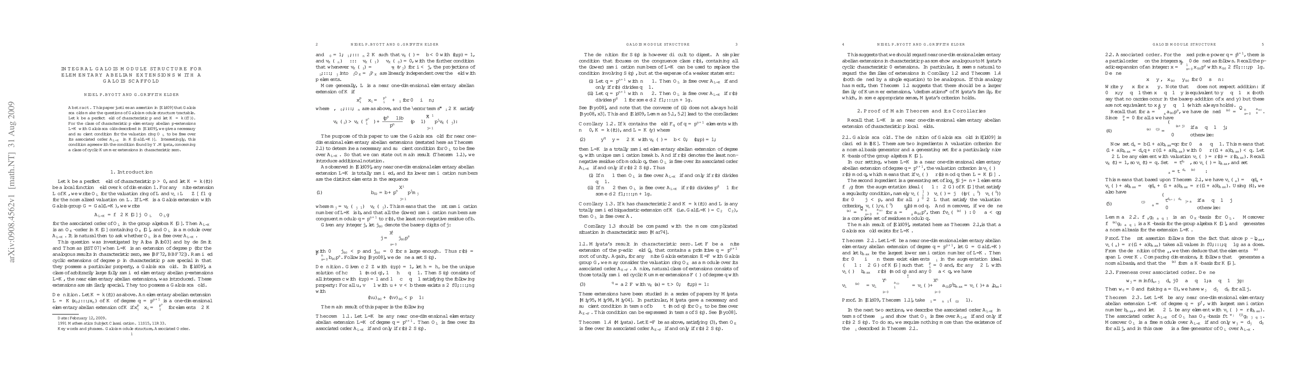 This paper provides a necessary and sufficient condition for the valuation ring $\mathfrak{O}_L$ to be free over its associated order $\mathcal{A}_{L/K}$ in $K[\Gal(L/K)]$ for elementary abelian $p$-extensions $L/K$ with Galois scaffolds. The findings align with conditions identified by Y. Miyata for cyclic Kummer extensions in characteristic zero.