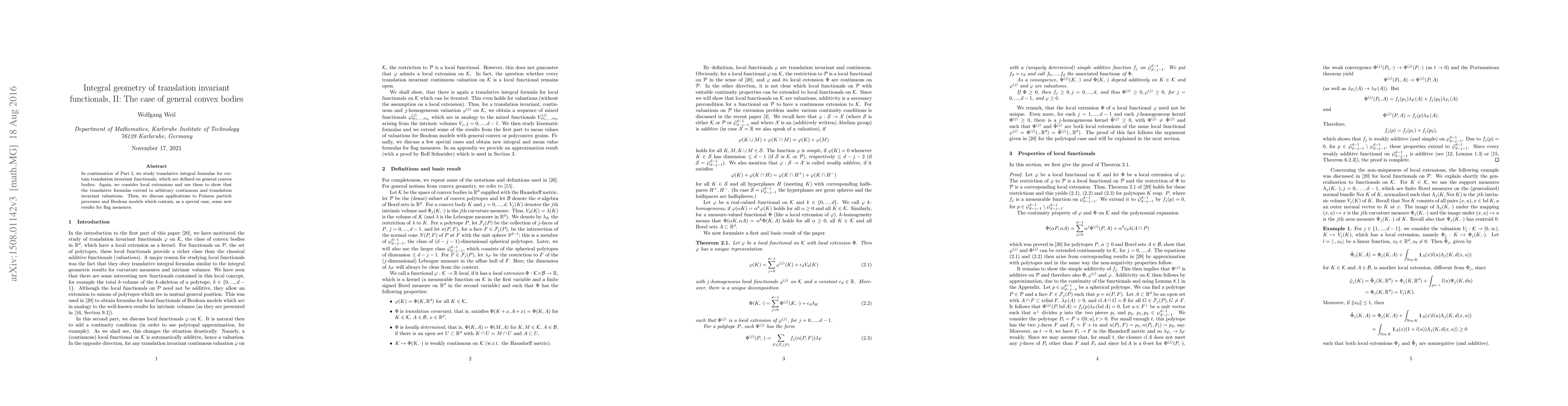 This paper extends the study of translative integral formulas for translation invariant functionals defined on general convex bodies, demonstrating their extension to arbitrary continuous and translation invariant valuations. It also explores applications to Poisson particle processes and Boolean models, including new results for flag measures.