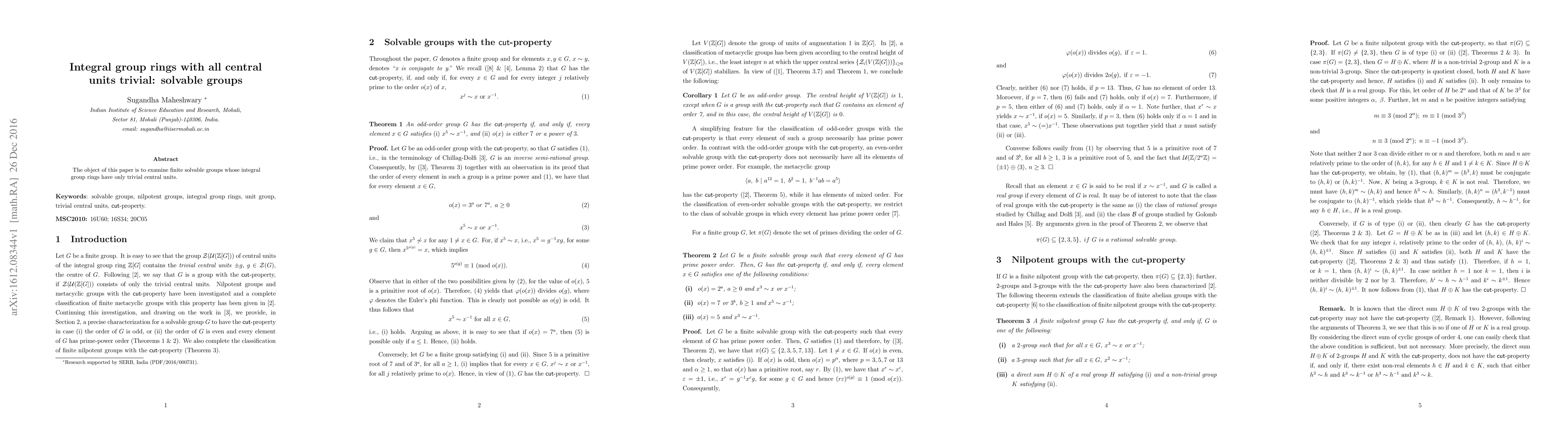 The object of this paper is to examine finite solvable groups whose integral group rings have only trivial central units.