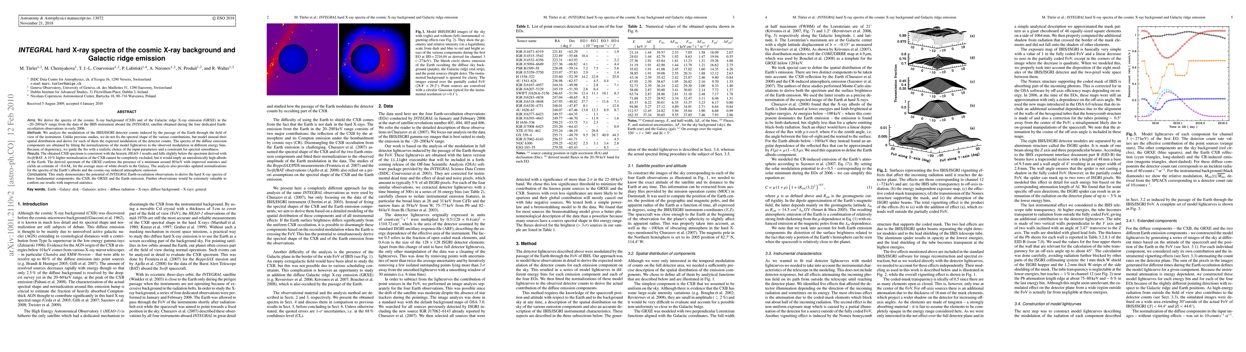 We derive the spectra of the cosmic X-ray background (CXB) and of the Galactic ridge X-ray emission (GRXE) in the ~20-200 keV range from the data of the IBIS instrument aboard the INTEGRAL satellite obtained during the four dedicated Earth-occultation observations of early 2006. We analyse the modulation of the IBIS/ISGRI detector counts induced by the passage of the Earth through the field of view of the instrument. Unlike previous studies, we do not fix the spectral shape of the various contributions, but model instead their spatial distribution and derive for each of them the expected modulation of the detector counts. The spectra of the diffuse emission components are obtained by fitting the normalizations of the model lightcurves to the observed modulation in different energy bins. The obtained CXB spectrum is consistent with the historic HEAO-1 results and falls slightly below the spectrum derived with Swift/BAT. A 10% higher normalization of the CXB cannot be completely excluded, but it would imply an unrealistically high albedo of the Earth. The derived spectrum of the GRXE confirms the presence of a minimum around 80 keV with improved statistics and yields an estimate of ~0.6 M_Sun for the average mass of white dwarfs in the Galaxy. The analysis also provides updated normalizations for the spectra of the Earth's albedo and the cosmic-ray induced atmospheric emission.