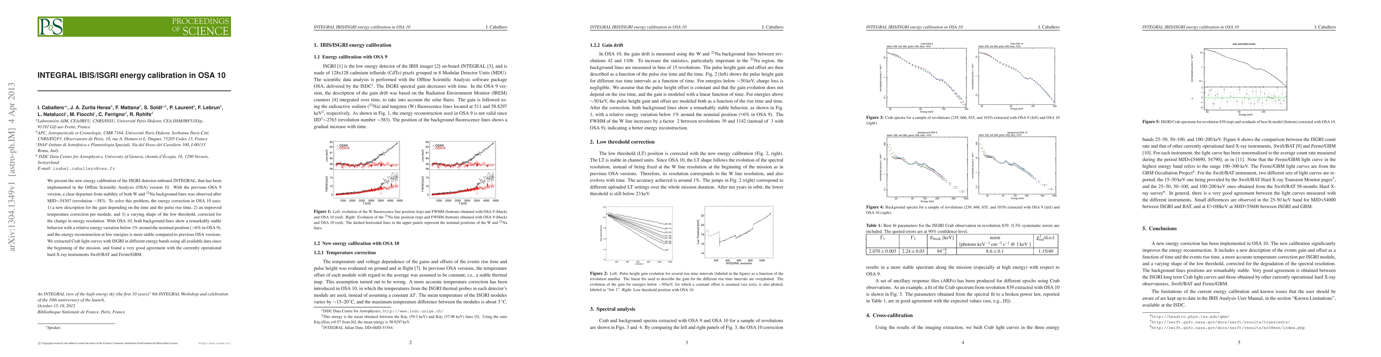 We present the new energy calibration of the ISGRI detector onboard INTEGRAL, that has been implemented in the Offline Scientific Analysis (OSA) version 10. With the previous OSA 9 version, a clear departure from stability of both W and 22Na background lines was observed after MJD 54307 (revolution ~583). To solve this problem, the energy correction in OSA 10 uses: 1) a new description for the gain depending on the time and the pulse rise time, 2) an improved temperature correction per module, and 3) a varying shape of the low threshold, corrected for the change in energy resolution. With OSA 10, both background lines show a remarkably stable behavior with a relative energy variation below 1% around the nominal position (>6% in OSA 9), and the energy reconstruction at low energies is more stable compared to previous OSA versions. We extracted Crab light curves with ISGRI in different energy bands using all available data since the beginning of the mission, and found a very good agreement with the currently operational hard X-ray instruments Swift/BAT and Fermi/GBM.
