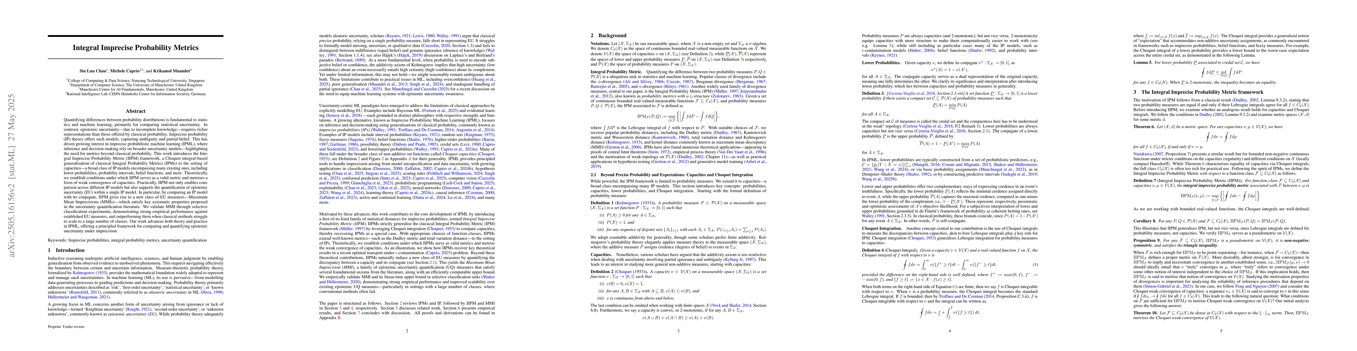 This paper introduces the Integral Imprecise Probability Metric (IIPM), a new framework for comparing and quantifying epistemic uncertainty in imprecise probabilistic machine learning, offering a principled approach to IPML.