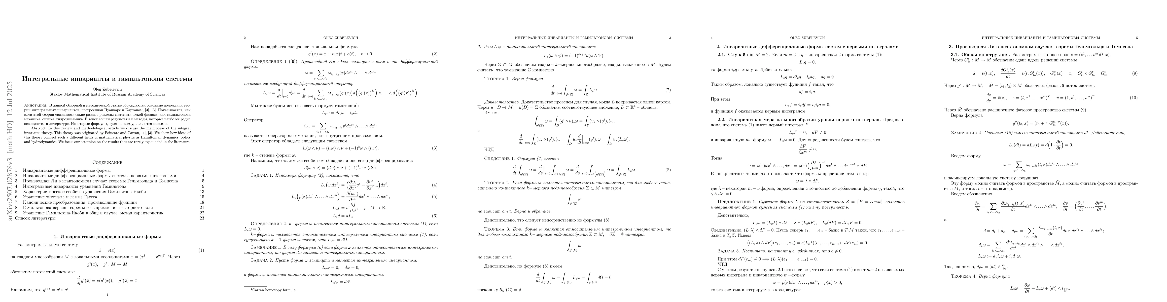 In this review and methodological article we discuss the main ideas of the integral invariants theory. This theory was originated by Poincare and Cartan. We show how ideas of this theory connect such a different fields of mathematical physics as Hamiltonian dynamics, optics and hydrodynamics. We focus our attention on the results that are rarely expounded in the literature.