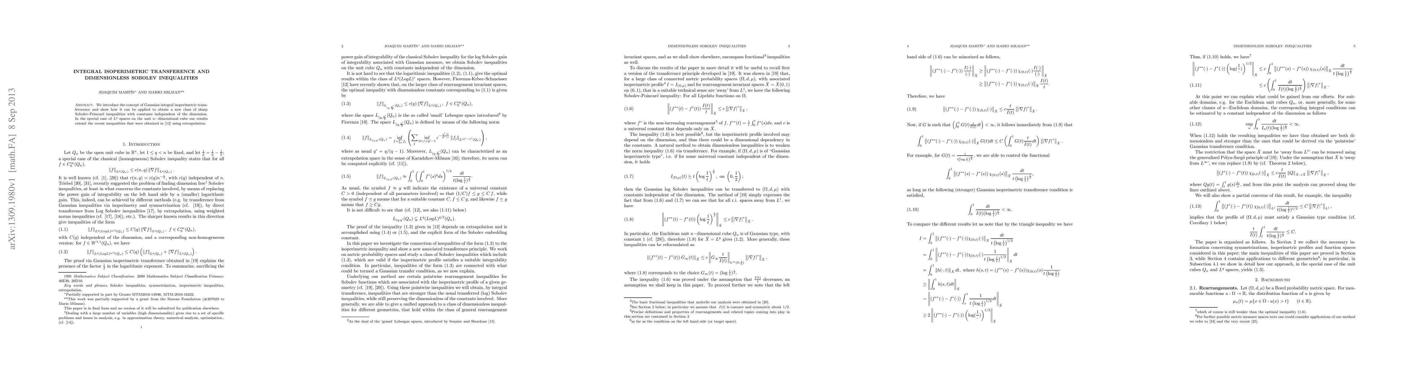 We introduce the concept of Gaussian integral isoperimetric transference and show how it can be applied to obtain a new class of sharp Sobolev-Poincar\'{e} inequalities with constants independent of the dimension. In the special case of $L^{q}$ spaces on the unit $n-$dimensional cube our results extend the recent inequalities that were obtained in \cite{FKS} using extrapolation.