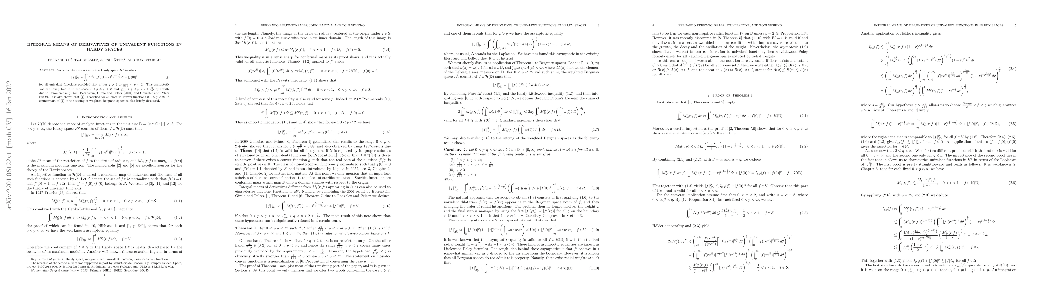 \|f\|_{H^p}^p\asymp\int_0^1M_q^p(r,f')(1-r)^{p\left(1-\frac1q\right)}\,dr+|f(0)|^p\tag{\dag}
