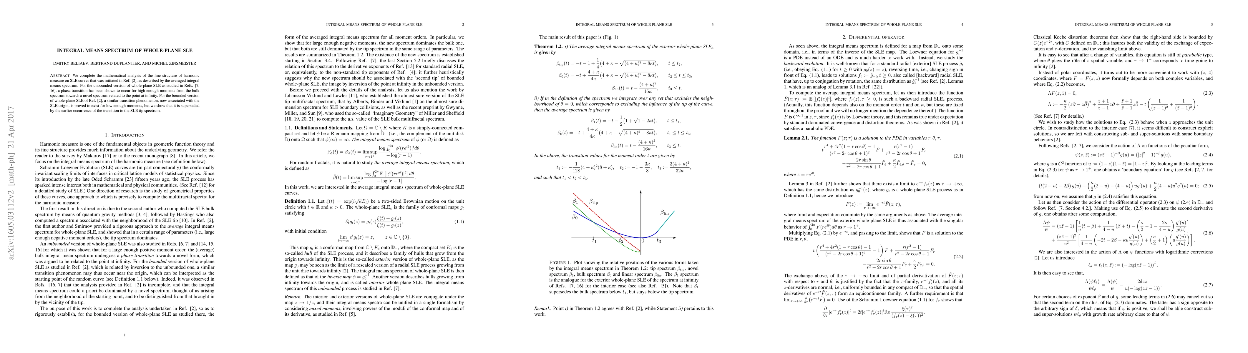We complete the mathematical analysis of the fine structure of harmonic measure on SLE curves that was initiated by Beliaev and Smirnov, as described by the averaged integral means spectrum. For the unbounded version of whole-plane SLE as studied by Duplantier, Nguyen, Nguyen and Zinsmeister, and Loutsenko and Yermolayeva, a phase transition has been shown to occur for high enough moments from the bulk spectrum towards a novel spectrum related to the point at infinity. For the bounded version of whole-plane SLE studied here, a similar transition phenomenon, now associated with the SLE origin, is proved to exist for low enough moments, but we show that it is superseded by the earlier occurrence of the transition to the SLE tip spectrum.
