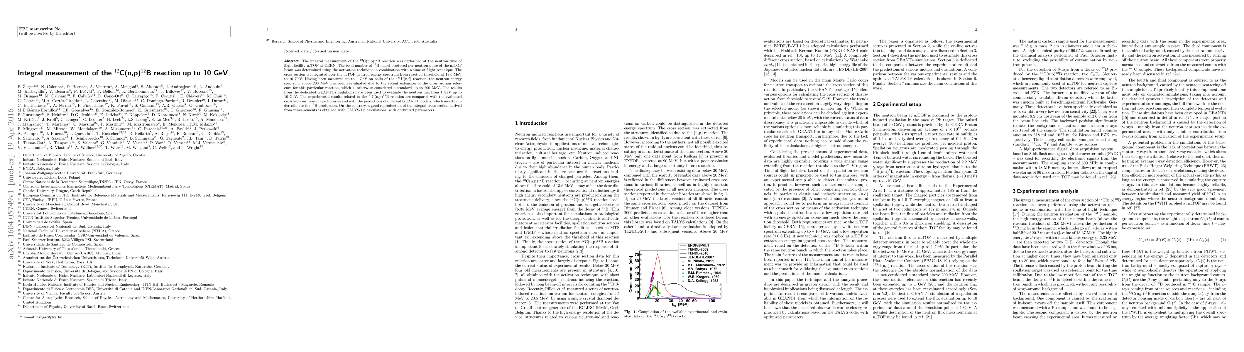 This paper reports on the integral measurement of the $^{12}$C(n,p)$^{12}$B reaction up to 10 GeV using neutron time-of-flight techniques at CERN's n_TOF facility, revealing discrepancies between experimental results and GEANT4 model predictions. The study also highlights the improved agreement with TALYS-1.6 calculations when optimized parameters are used.