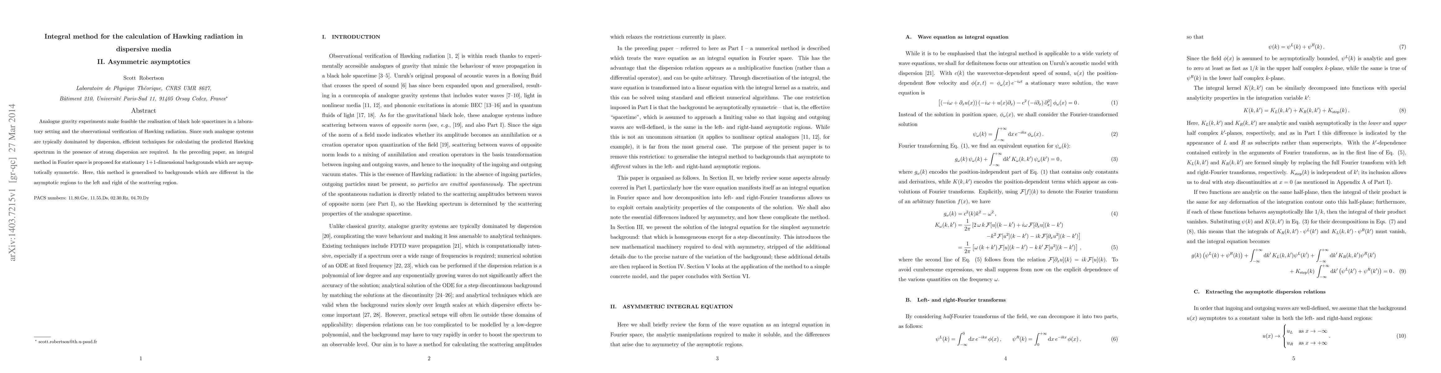 A new method for calculating Hawking radiation in dispersive media is presented, enabling the study of analogue gravity systems with non-symmetric asymptotics, a crucial step towards verifying Hawking radiation in laboratory settings.
