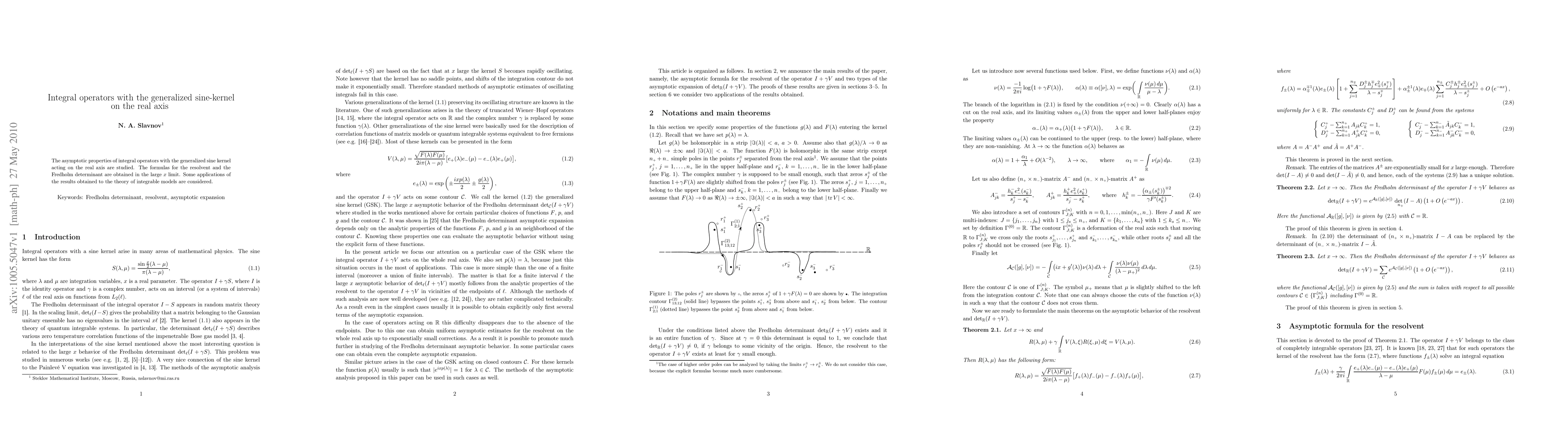 Research investigates the asymptotic properties of integral operators with a generalized sine-kernel on the real axis, finding formulas for resolvent and Fredholm determinant in the large x limit.