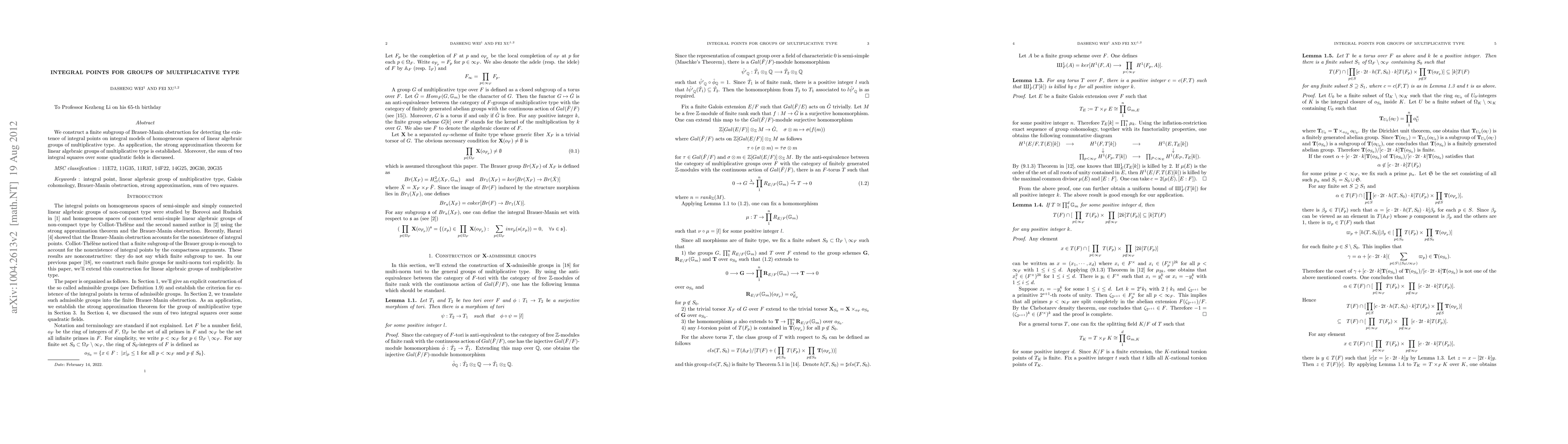 This paper constructs a finite subgroup of Brauer-Manin obstruction to identify integral points on models of homogeneous spaces of multiplicative type groups, establishing the strong approximation theorem for these groups and discussing the sum of two integral squares over quadratic fields.