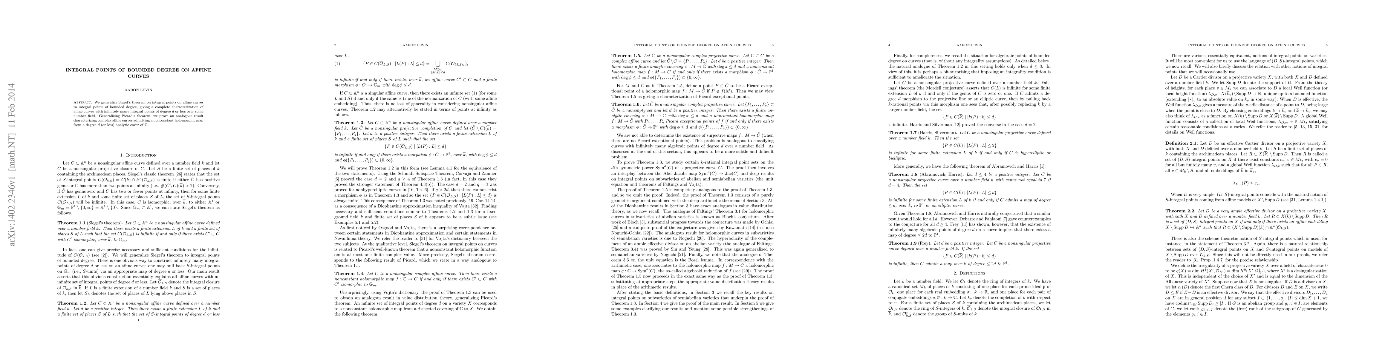 We generalize Siegel's theorem on integral points on affine curves to integral points of bounded degree, giving a complete characterization of affine curves with infinitely many integral points of degree d or less over some number field. Generalizing Picard's theorem, we prove an analogous result characterizing complex affine curves admitting a nonconstant holomorphic map from a degree d (or less) analytic cover of $\mathbb{C}$.
