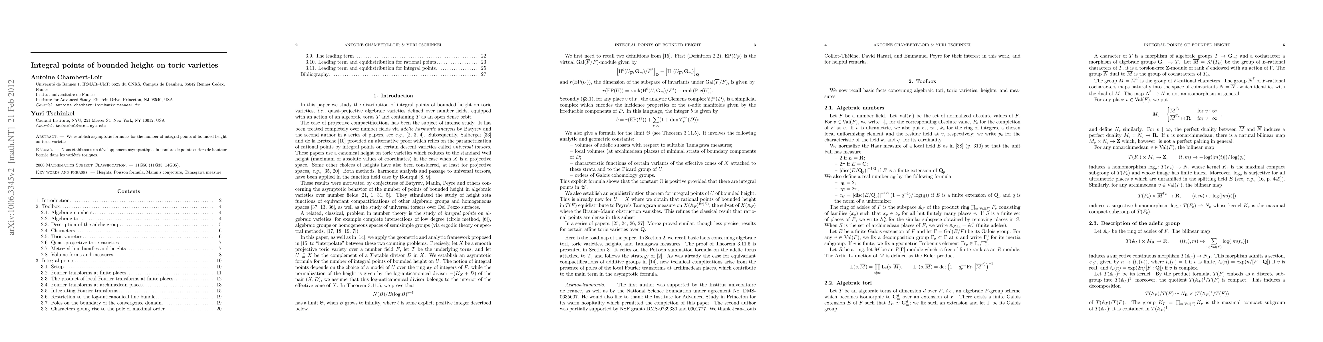 Summary: The paper provides asymptotic formulas for the count of integral points on toric varieties that have bounded height, offering insights into their distribution.