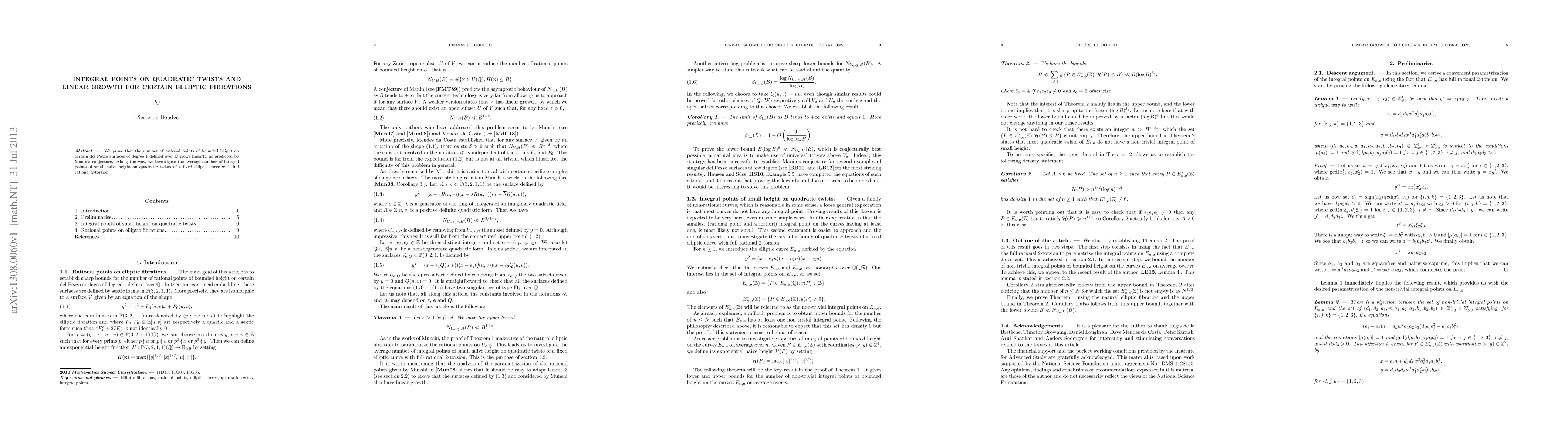 Summary: This paper demonstrates linear growth in the number of rational points of bounded height on specific del Pezzo surfaces over Q, supporting Manin's conjecture. It also examines the average number of integral points on quadratic twists of a fixed elliptic curve with full rational 2-torsion.