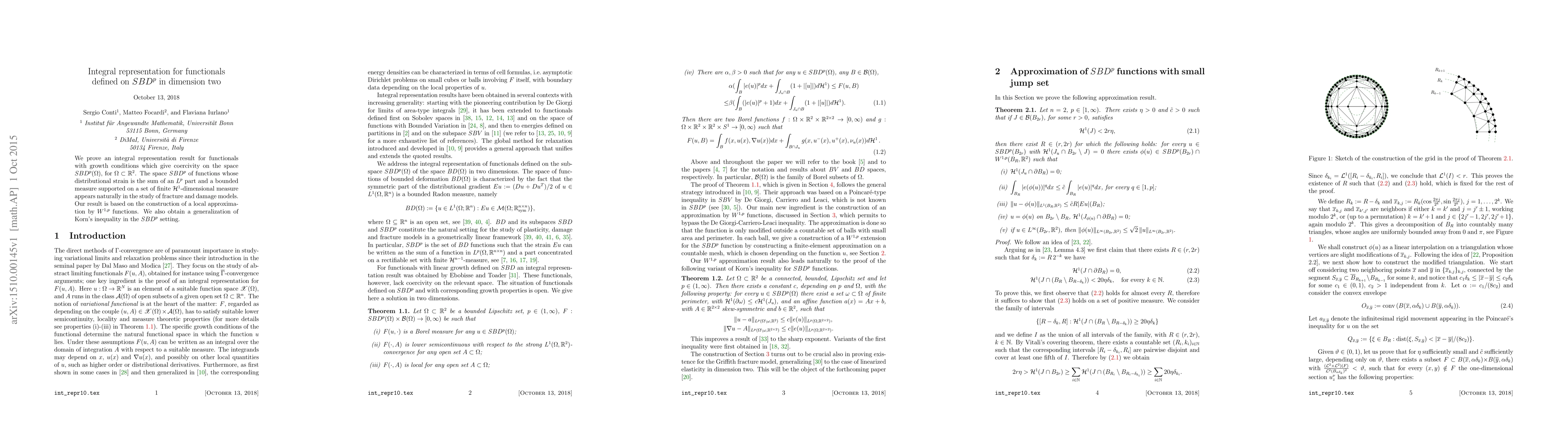 This paper proves an integral representation for functionals on the $SBD^p$ space in two dimensions, which is relevant for fracture and damage models. The authors achieve this by constructing local approximations using $W^{1,p}$ functions and generalize Korn's inequality in the $SBD^p$ setting.