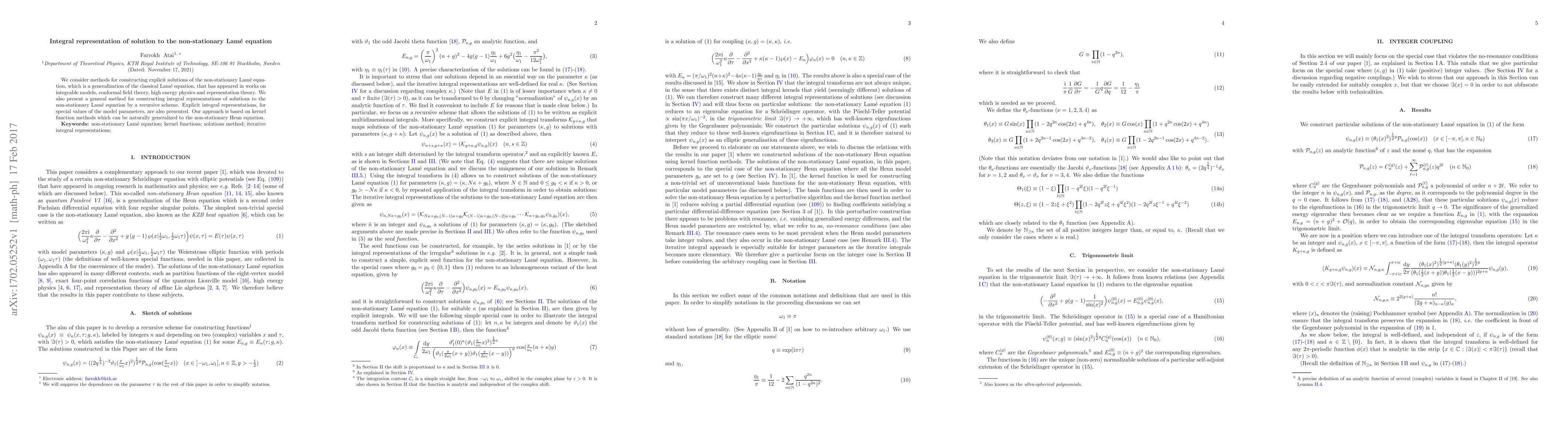 The paper presents a recursive scheme for constructing integral representations of solutions to the non-stationary Lame equation, employing kernel function methods. It also provides explicit integral representations for specific parameter values and discusses generalization to the non-stationary Heun equation.