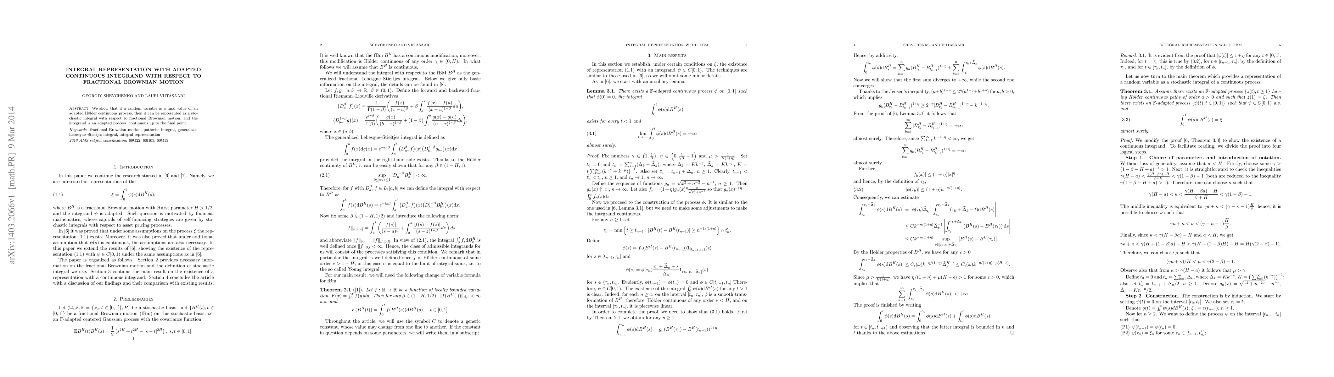 We show that if a random variable is a final value of an adapted Holder continuous process, then it can be represented as a stochastic integral with respect to fractional Brownian motion, and the integrand is an adapted process, continuous up to the final point.