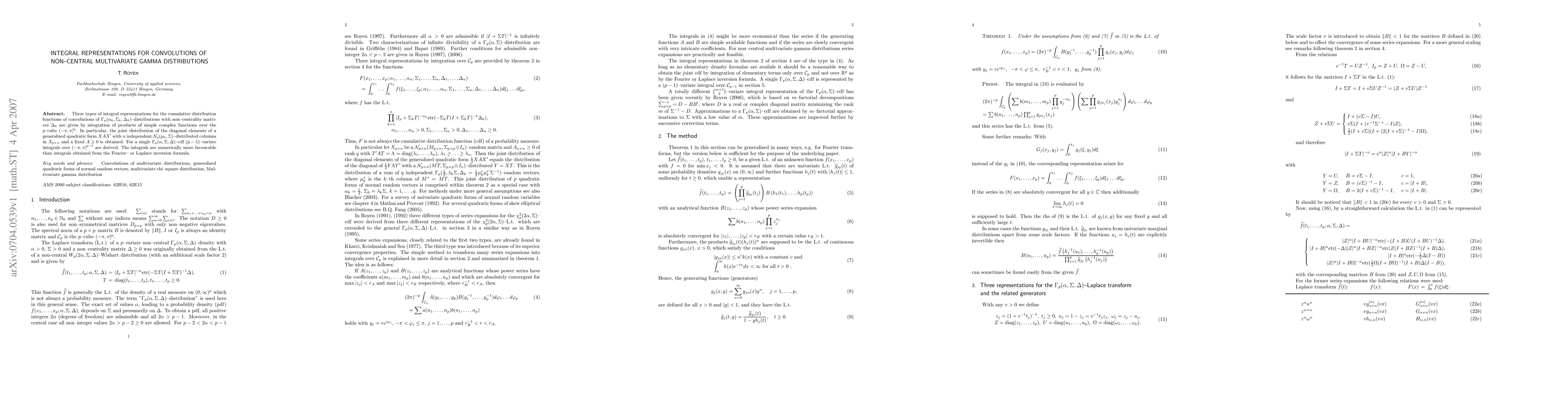 Research finds integral representations for convolutions of non-central multivariate gamma distributions, offering a more numerically favorable approach than Fourier or Laplace inversion formulas, with implications for analyzing generalized quadratic forms.
