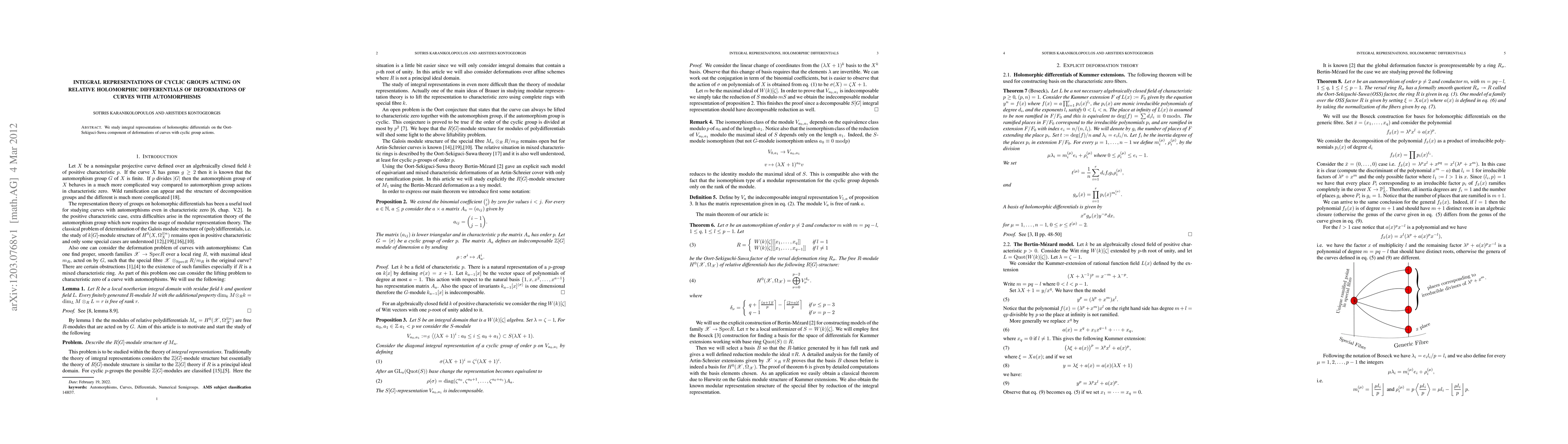 Summary: This paper investigates integral representations of holomorphic differentials on the Oort-Sekiguchi-Suwa component for deformations of curves, focusing on cyclic group actions. The study aims to understand the structure of these differentials under such group actions.