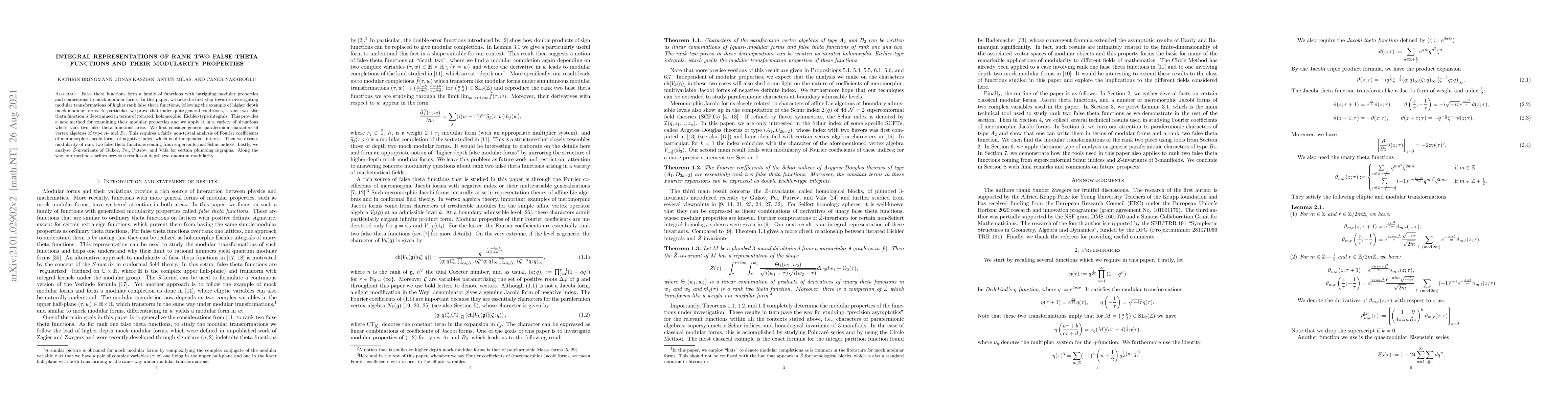 This paper introduces integral representations for rank two false theta functions and explores their modularity properties, using holomorphic Eichler-type integrals. It applies these methods to vertex algebras, superconformal Schur indices, and Gukov-P-P-V $\hat{Z}$-invariants, clarifying prior quantum modularity findings.