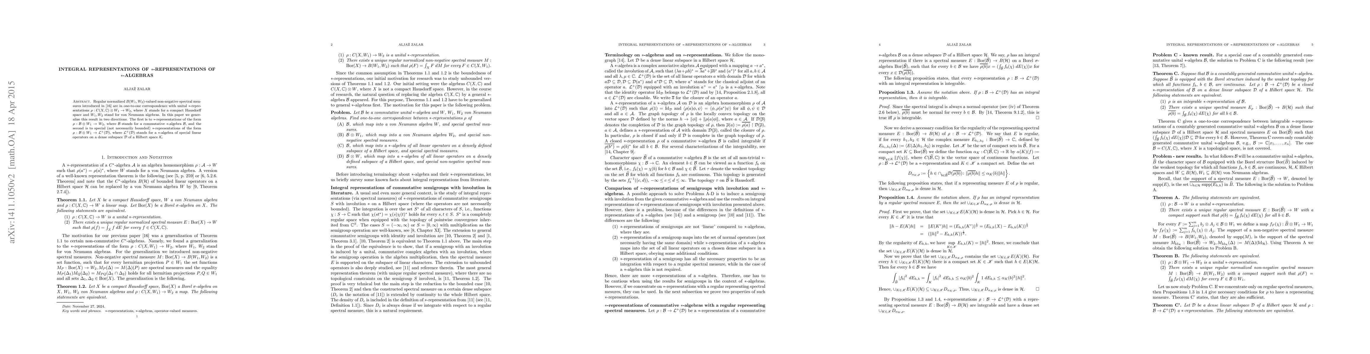 Regular normalized $B(W_1,W_2)$-valued non-negative spectral measures introduced in \cite{Zalar2014} are in one-to-one correspondence with unital $\ast$-representations $\rho:C(X,\mathbb{C})\otimes W_1 \rightarrow W_2$, where $X$ stands for a compact Hausdorff space and $W_1, W_2$ stand for von Neumann algebras. In this paper we generalize this result in two directions. The first is to $\ast$-representations of the form $\rho:\mathcal{B}\otimes W_1\rightarrow W_2$, where $\mathcal{B}$ stands for a commutative $\ast$-algebra $\mathcal{B}$, and the second is to special (not necessarily bounded) $\ast$-representations of the form $\rho:\mathcal{B}\otimes W_1\rightarrow \mathcal{L}^+(\mathcal{D})$, where $\mathcal{L}^+(\mathcal{D})$ stands for a $\ast$-algebra of special linear operators on a dense subspace $\mathcal{D}$ of a Hilbert space $\mathcal{K}$.
