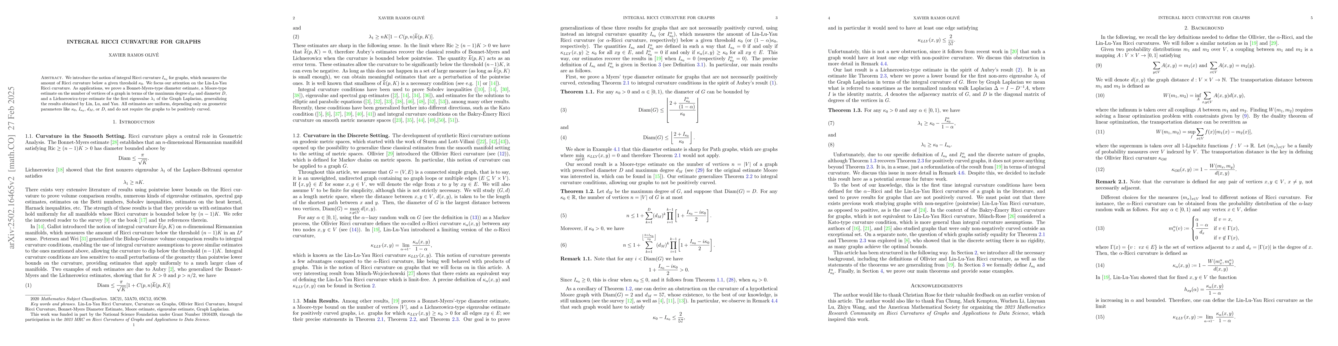 The introduction of integral Ricci curvature $I_{\kappa_0}$ for graphs and the development of uniform curvature-based estimates.