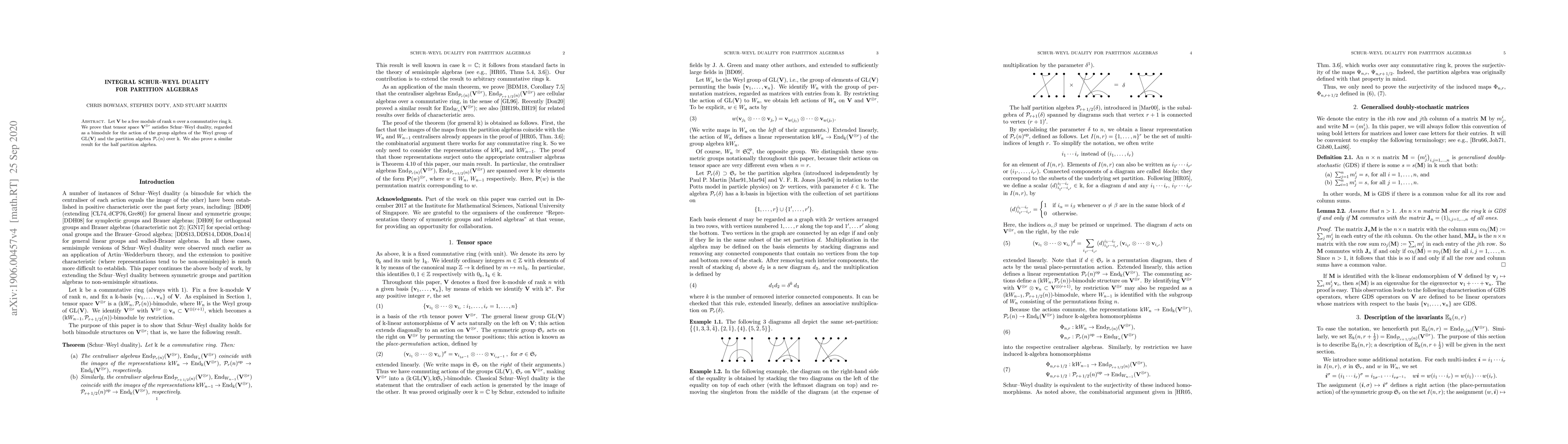 Let $V$ be a free module of rank $n$ over a commutative unital ring $k$. We prove that tensor space $V^{\otimes r}$ satisfies Schur--Weyl duality, regarded as a bimodule for the action of the group algebra of the Weyl group of $\mathrm{GL}(V)$ and the partition algebra $P_r(n)$ over $k$. We also prove a similar result for the half partition algebra.