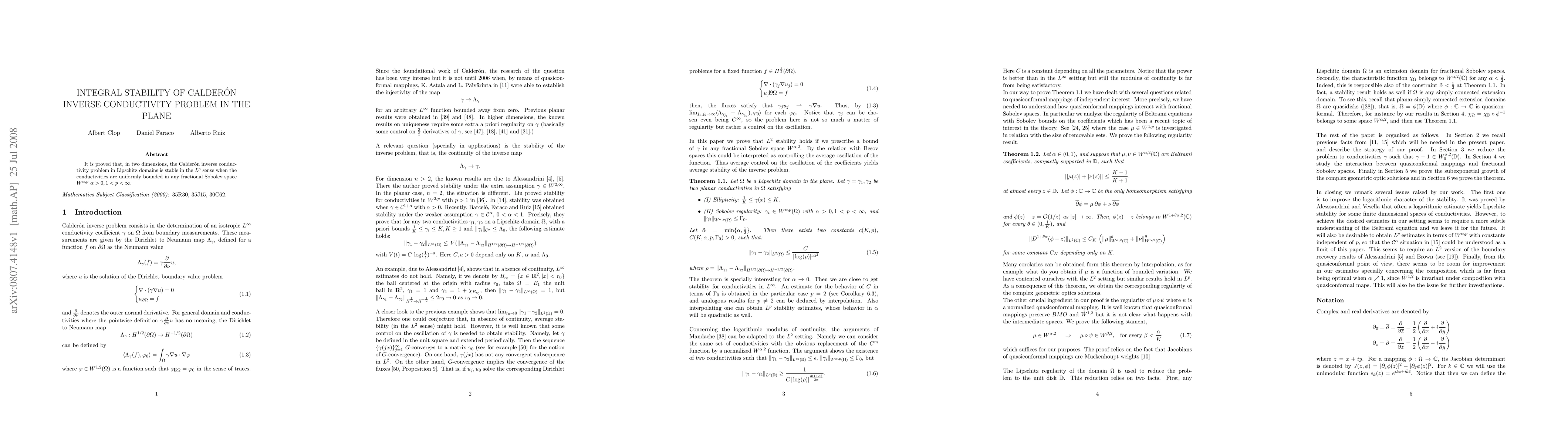 Summary: The paper proves the integral stability of the Calderón inverse conductivity problem in two dimensions within Lipschitz domains, demonstrating that the problem is stable in the $L^p$ sense under uniformly bounded conductivities in fractional Sobolev spaces $W^{\alpha,p}$ for $\alpha > 0$ and $1 < p < \infty$.