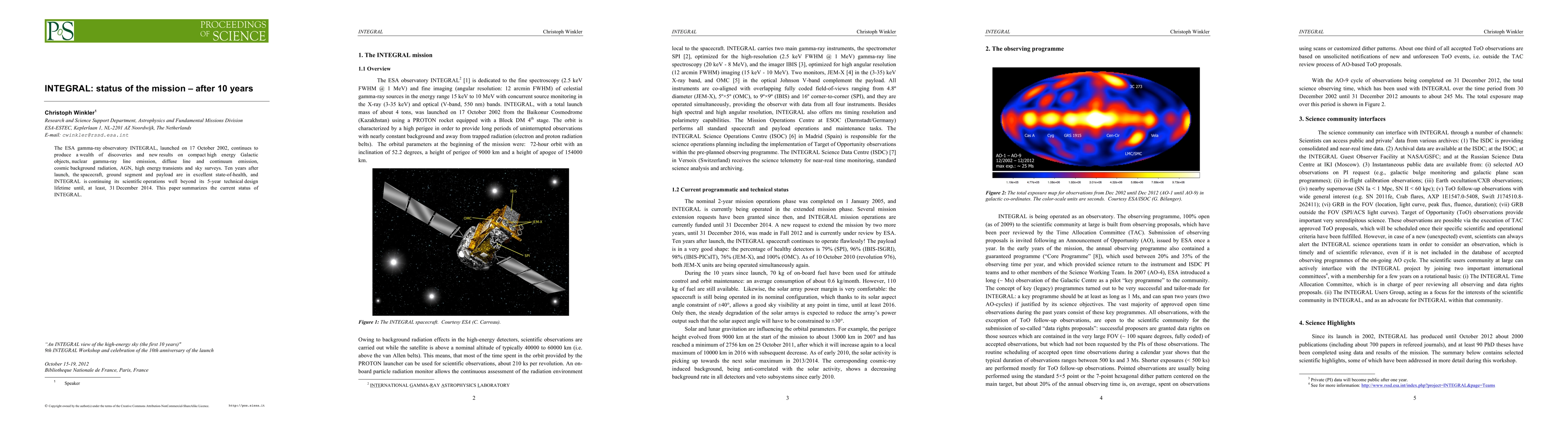 The ESA's INTEGRAL gamma-ray observatory, launched in 2002, continues to yield significant discoveries in high-energy astrophysics, and remains operational well beyond its initial design lifetime. The spacecraft and its instruments are in excellent condition, ensuring continued scientific operations until at least December 2014.