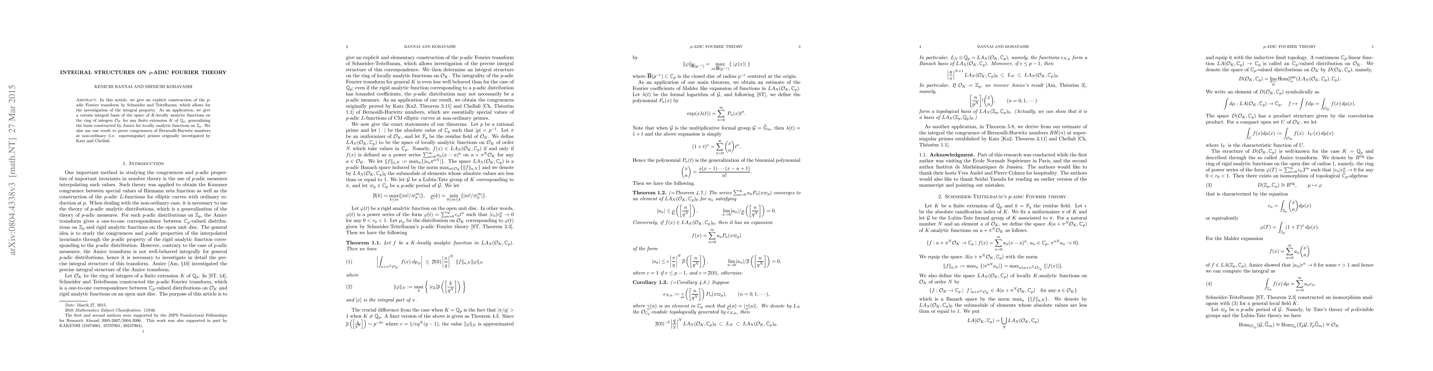 In this article, we give an explicit construction of the $p$-adic Fourier transform by Schneider and Teitelbaum, which allows for the investigation of the integral property. As an application, we give a certain integral basis of the space of $K$-locally analytic functions on the ring of integers $\mathcal{O}_K$ for any finite extension $K$ of $\mathbb{Q}_p$, generalizing the basis constructed by Amice for locally analytic functions on $\mathbb{Z}_p$. We also use our result to prove congruences of Bernoulli-Hurwitz numbers at non-ordinary (i.e. supersingular) primes originally investigated by Katz and Chellali.