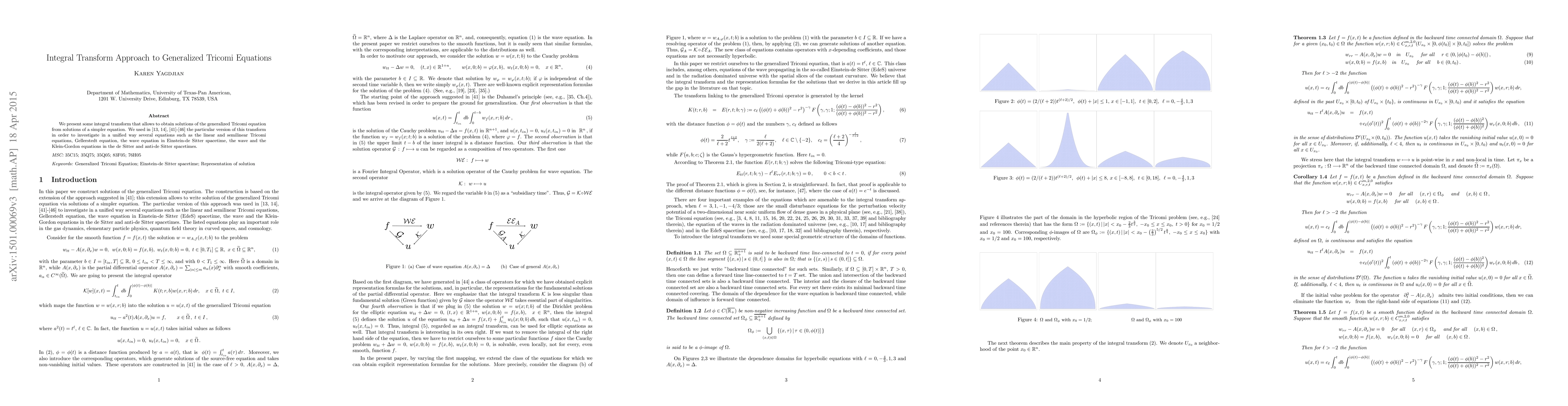 This paper introduces an integral transform technique to derive solutions for generalized Tricomi equations from simpler equations. The method has been applied to various equations including the Tricomi, Gellerstedt, and wave/Klein-Gordon equations in different spacetimes.