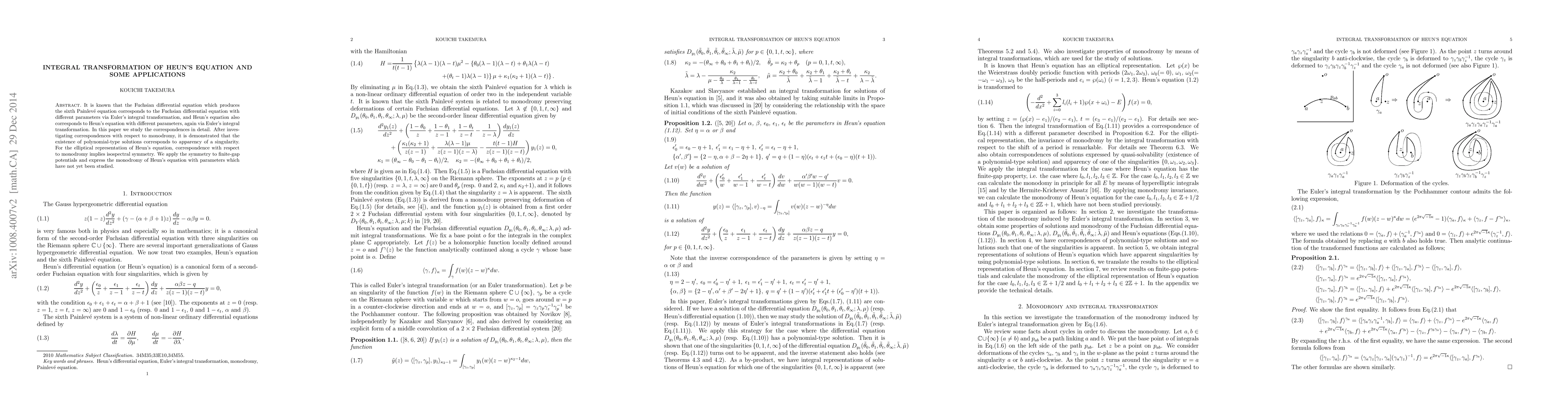 This paper explores the integral transformation of Heun's equation using Euler's method, revealing correspondences between different parameter sets. It demonstrates that polynomial-type solutions correlate with singularity apparency and applies these findings to finite-gap potentials, uncovering new monodromy insights for previously unstudied parameters.